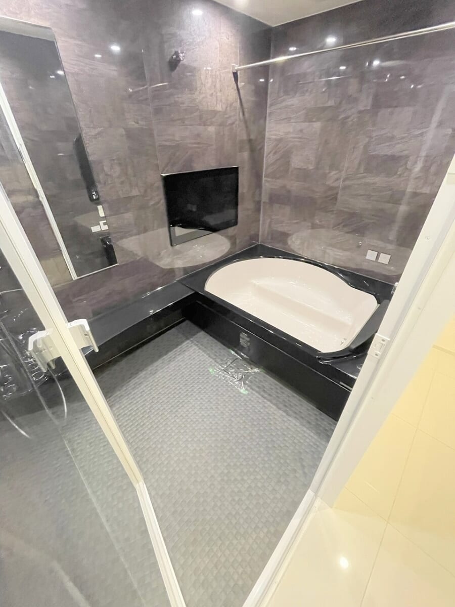 大きなバスルームにはTVもついておりますので、TVを見ながら長時間の半身浴で毎日の疲れを是非癒して頂きたいですね🛁