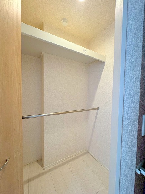 使い勝手の良いウォークインクローゼットを完備されており、コートやワンピースなどの丈のある衣類もすっきり収納できます。