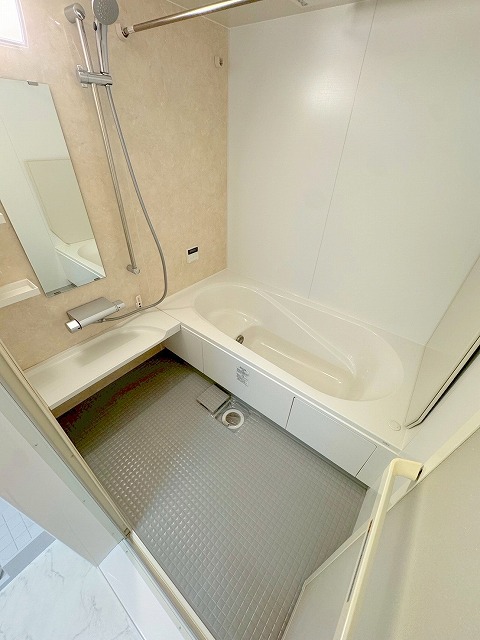 大きな浴槽は体にフィットするゆったりサイズのものを採用しており、腰も掛けられる段差もあり小さなお子様も安心安心して入浴できます🛁